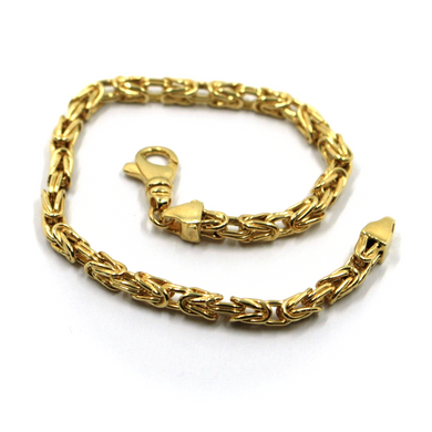 18k yellow gold squared tubular 4.1mm byzantine bracelet, 21cm 8.3" hollow