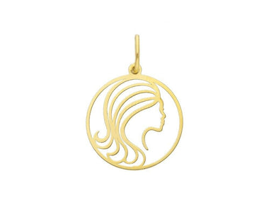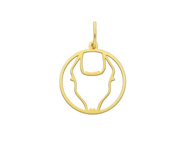18k yellow gold zodiac sign round small 15mm flat pendant, zodiacal, virgo