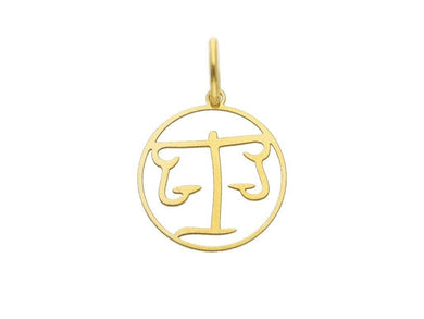 18k yellow gold zodiac sign round small 15mm flat pendant, zodiacal, libra