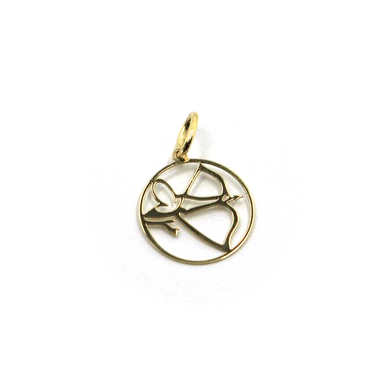 18k yellow gold zodiac sign round mini 12mm pendant, sagittarius stylized
