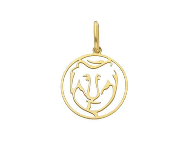 18k yellow gold zodiac sign round small 15mm flat pendant, zodiacal, leo