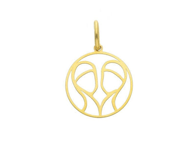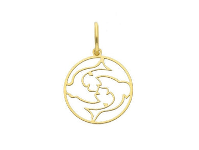 18k yellow gold zodiac sign round small 15mm flat pendant, zodiacal, pisces