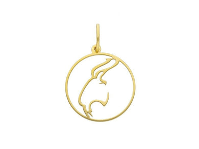 18k yellow gold zodiac sign round small 15mm flat pendant, zodiacal, capricorn