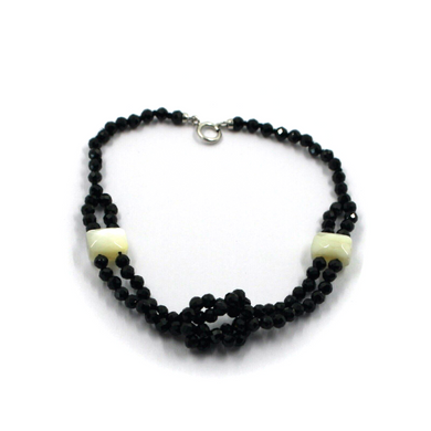 18k white gold 7.3" multi wires knot bracelet with black spinel, mother of pearl