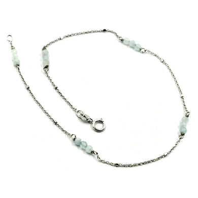 18K WHITE GOLD ANKLET 9.8" 25cm WITH FACETED AQUAMARINE DIAMETER 3mm