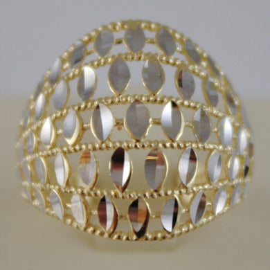 SOLID 18K WHITE & YELLOW GOLD BAND RING LUMINOUS FINELY WORKED MADE IN ITALY