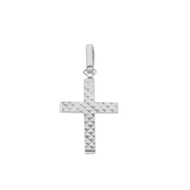 Solid 18k white and pink gold flat cross with square in the center made in Italy