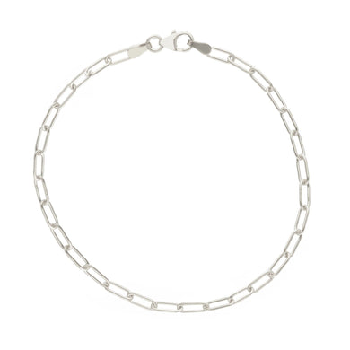 solid 18k white gold bracelet rounded tube oval paper clip 2.5x7mm link, 7.5"
