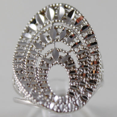 SOLID 18K WHITE GOLD BAND RING OVAL WAVE, BRIGHT, FINELY WORKED MADE IN ITALY