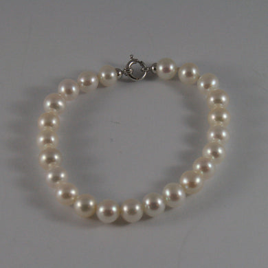 solid 18k white gold bracelet with freshwater white pearl made in Italy 7.28 in.