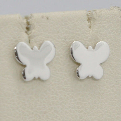 SOLID 18K WHITE GOLD EARRINGS FLAT BUTTERFLY, SHINY, SMOOTH, 8 MM, MADE IN ITALY