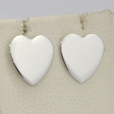 SOLID 18K WHITE GOLD EARRINGS FLAT HEART, SHINY, SMOOTH, 8x6mm, MADE IN ITALY