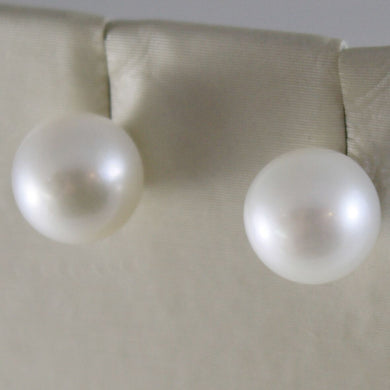 SOLID 18K WHITE GOLD EARRINGS WITH PEARL PEARLS 9 MM, MADE IN ITALY