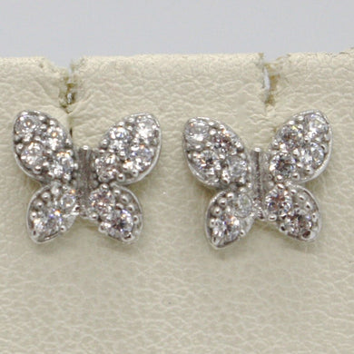 SOLID 18K WHITE GOLD EARRINGS BUTTERFLY & ZIRCONIA, DIAMETER 10 MM