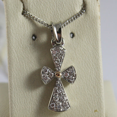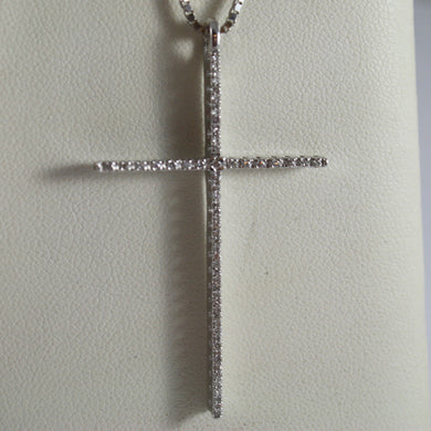 • SOLID 18K WHITE GOLD NECKLACE WITH CROSS, DIAMONDS, DIAMOND MADE IN ITALY