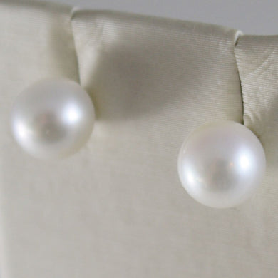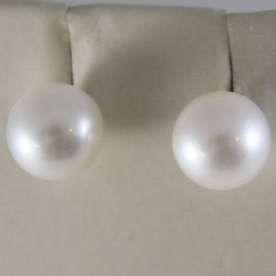 • SOLID 18K WHITE OR YELLOW GOLD EARRINGS WITH PEARL PEARLS 8.5 MM, MADE IN ITALY
