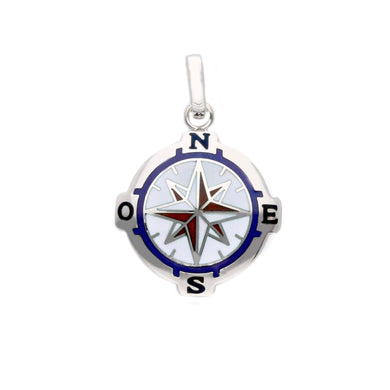 • solid 18k white gold, white blue red enamel round pendant 20mm, compass medal