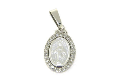 • SOLID 18K WHITE GOLD ZIRCONIA MIRACULOUS MEDAL VIRGIN MARY MADONNA