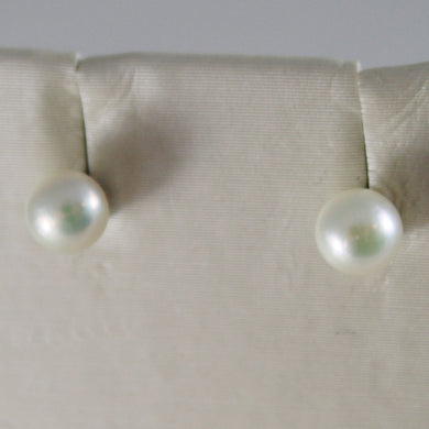 • SOLID 18K WHITE OR YELLOW GOLD EARRINGS WITH PEARL PEARLS 7 MM, MADE IN ITALY