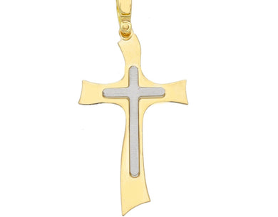 • Solid 18k yellow and white gold flat cross very luster and satin made in Italy