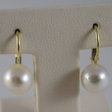SOLID 18K YELLOW GOLD LEVERBACK EARRINGS WITH AKOYA PEARLS 8 MM, MADE IN ITALY