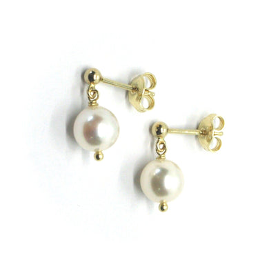 • solid 18k yellow gold long leverback earrings, akoya pearls diameter 7.5/8 mm