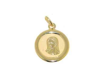 SOLID 18K YELLOW GOLD MEDAL VIRGIN MARY MARIA MADONNA ENGRAVABLE MADE IN ITALY.