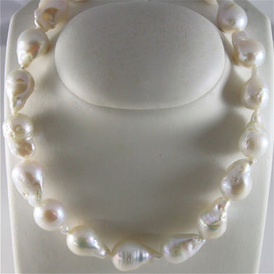 SOLID 18K YELLOW GOLD NECKLACE WITH BIG LUSTER BAROQUE DROP PEARLS MADE IN ITALY