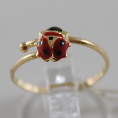 SOLID 18K YELLOW GOLD RING WITH GLAZED LADYBIRD LADYBUG FOR GIRL, MADE IN ITALY