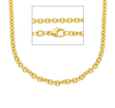 Solid 18k yellow gold rolo circles 3mm chain, 20 inches, lobster clasp