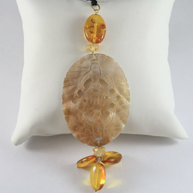 SOLID 18K YELLOW GOLD PENDANT, AZTEC STYLE, AMBER, CITRINE, MADE IN ITALY