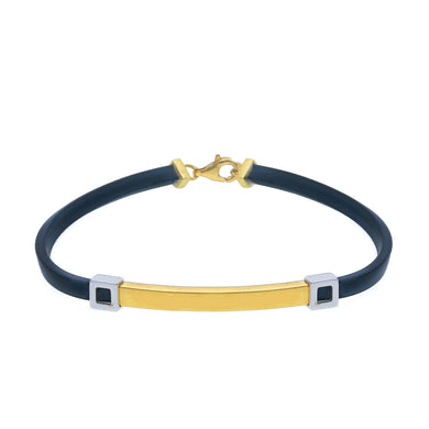 • SOLID 18K YELLOW WHITE GOLD BRACELET 6mm RECTANGULAR TUBE PLATE & BLACK RUBBER