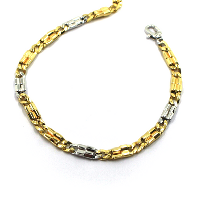 • solid 18k yellow white gold bracelet square cubes ovals alternate flat 5.7mm