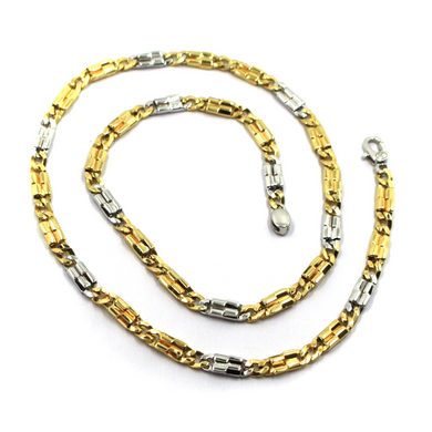 • Solid 18k yellow white gold 19.6" chain square tubular alternate 4.2mm links