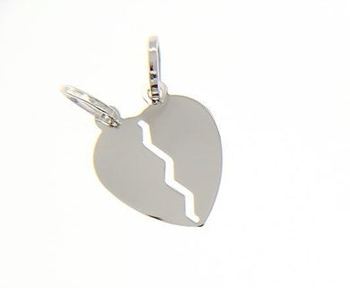 18K WHITE GOLD DOUBLE BROKEN HEART PENDANT CHARM ENGRAVABLE MADE IN ITALY