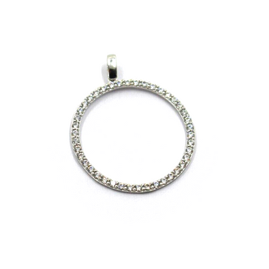 18k white gold diameter 25mm circle hoop round pendant with white cubic zirconia