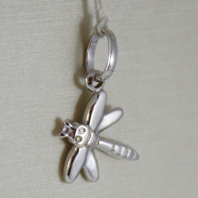 18K WHITE GOLD FLAT DRAGONFLY PENDANT CHARMS, 17 MM SMOOTH BRIGHT MADE IN ITALY