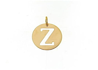 • 18K YELLOW GOLD LUSTER ROUND MEDAL WITH LETTER Z DIAMETER 0.5 IN
