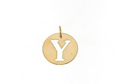 • 18K YELLOW GOLD LUSTER ROUND MEDAL WITH LETTER Y DIAMETER 0.5 IN