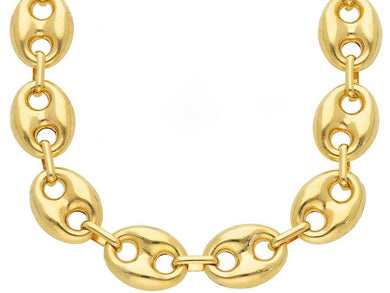 • 18k yellow gold mariner chain big ovals 10 mm, 20 inches anchor rounded puffed necklace