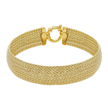 • 18k yellow gold multi-strand spiga wheat wires braided alternate 13mm bracelet