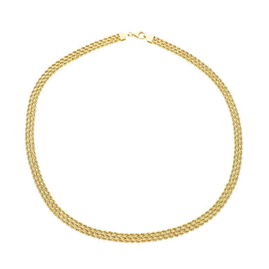• 18k yellow gold multi-strand 3 ropes wires braided necklace 6 mm wide, 17" long
