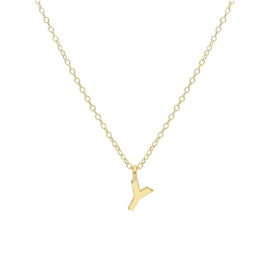 18k yellow gold rolo thin 16" necklace with small 5mm letter initial Y