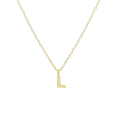 18k yellow gold rolo thin 16" necklace with small 5mm letter initial L