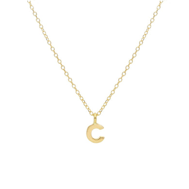 18k yellow gold rolo thin 16" necklace with small 5mm letter initial C