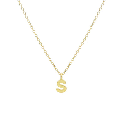 18k yellow gold rolo thin 16" necklace with small 5mm letter initial S