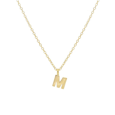 18k yellow gold rolo thin 16" necklace with small 5mm letter initial M