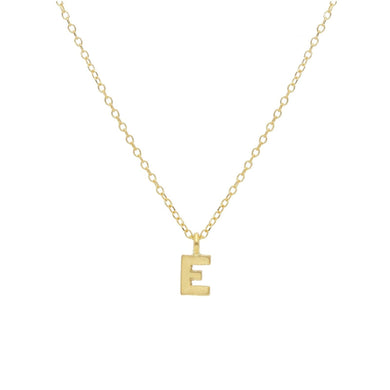 18k yellow gold rolo thin 16" necklace with small 5mm letter initial E