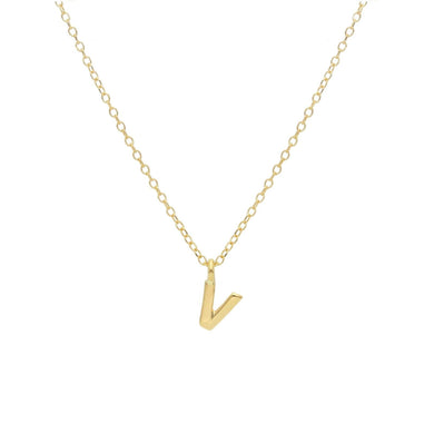 18k yellow gold rolo thin 16" necklace with small 5mm letter initial V