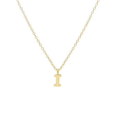 18k yellow gold rolo thin 16" necklace with small 5mm letter initial I